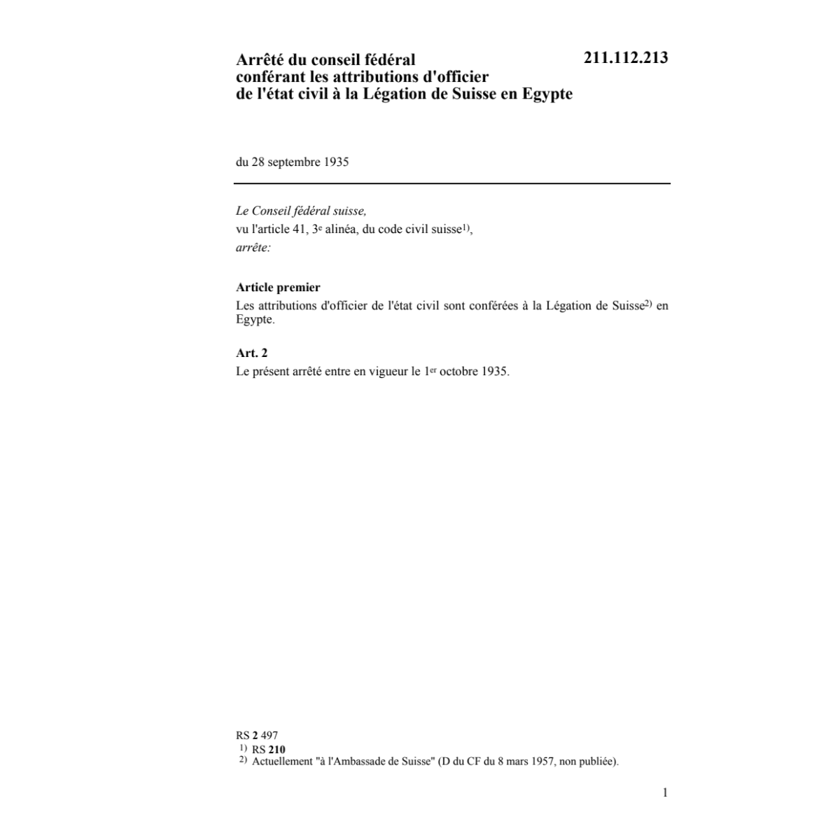 l'état civil à la légation de Suisse en Egypte