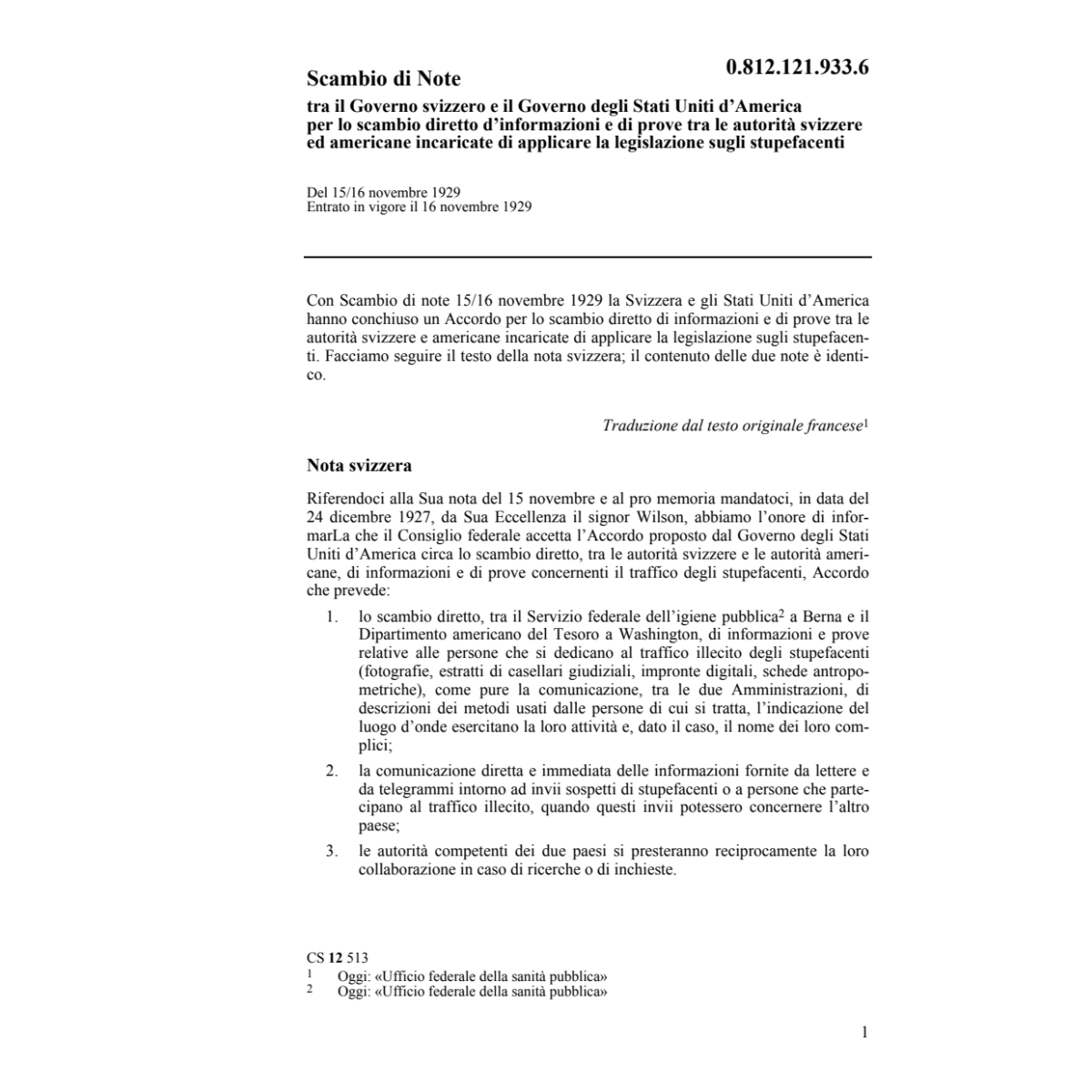 Scambio di note del 15/16 novembre 1929 tra il Governo