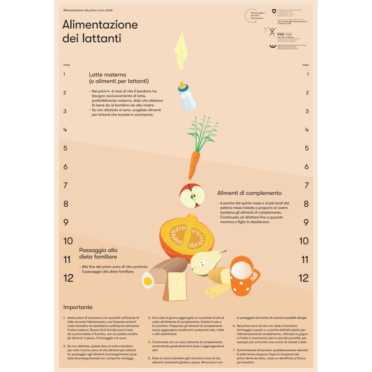 Poster fronte/retro (29,7x42 cm) con consigli per l'alimentazione di lattanti e bambini in tenera età