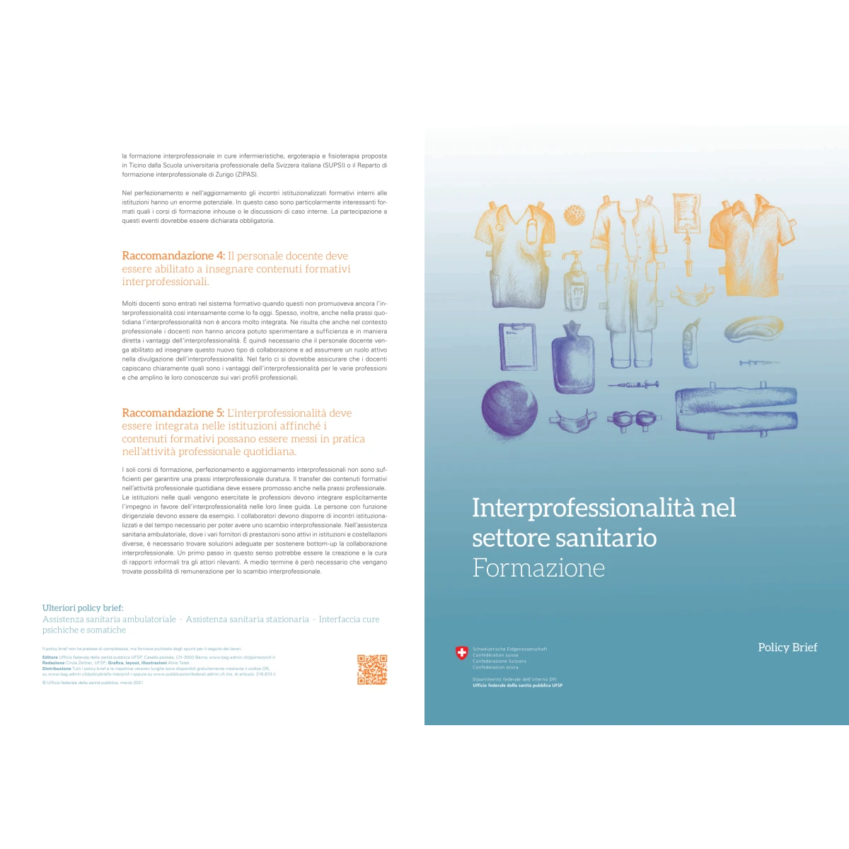 Il presente policy brief illustra le conclusioni a cui si è giunti in relazione alle sfide che devono affrontare gli istituti di formazione e i responsabili dei corsi di formazione, perfezionamento e aggiornamento dei professionisti della salute quando desiderano orientare maggiormente all’interprofessionalità i curricoli. Su questa base il policy brief formula poi delle raccomandazioni su possibili soluzioni già disponibili o che potrebbero essere sviluppate e implementate.