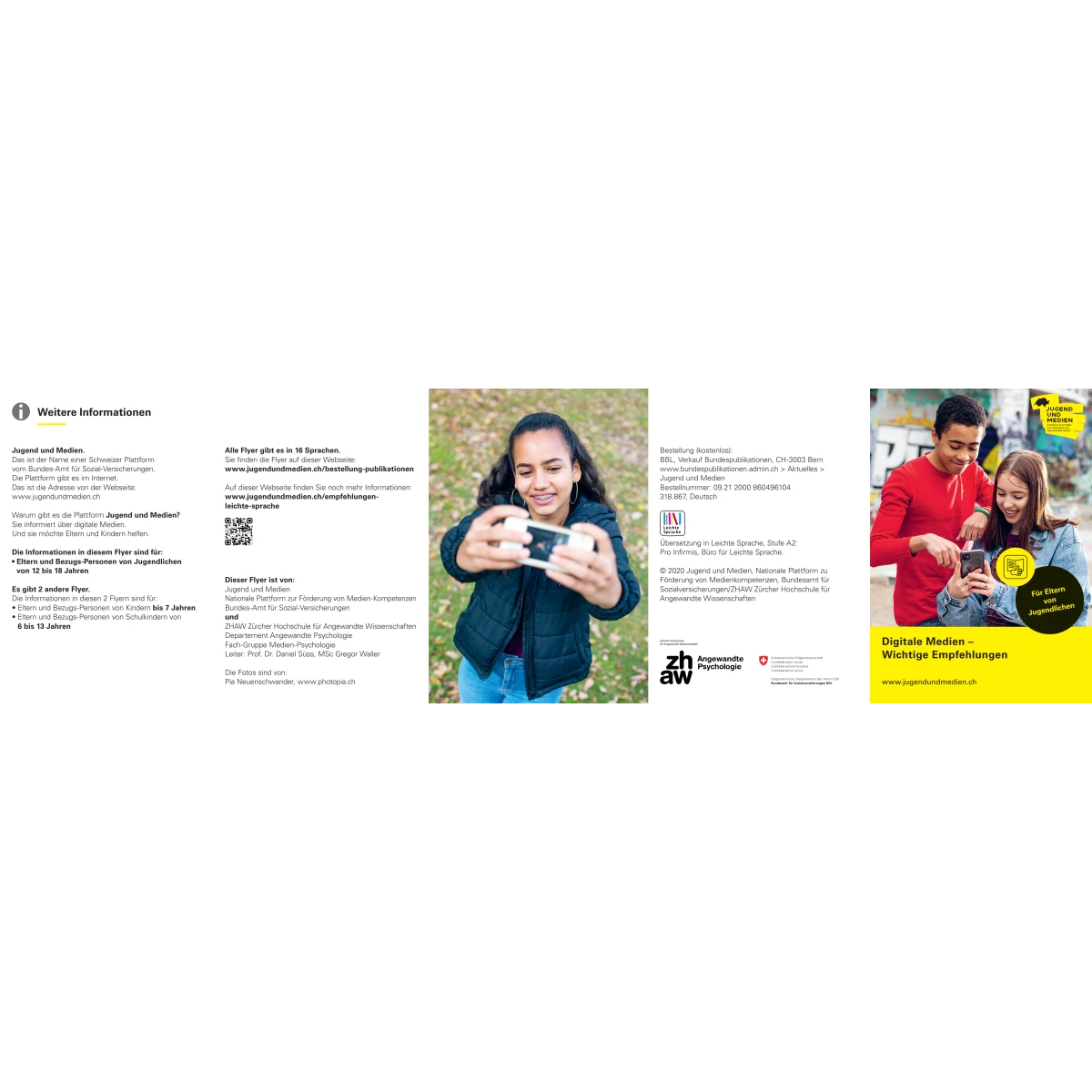Digitale Medien sind heute überall. Das sind zum Beispiel Webseiten, Apps, E-Books oder Computer-Spiele. Jugendliche von heute sind mit Smartphone und Internet gross geworden. Digitale Medien gehören zu ihrem Leben. Deshalb nutzen Jugendliche die digitalen Medien oft. Es ist wichtig, dass die Eltern wissen, wie die Jugendlichen die digitalen Medien nutzen und bei Fragen für die Jugendlichen da sind. Dieser Flyer hilft ihnen dabei.
