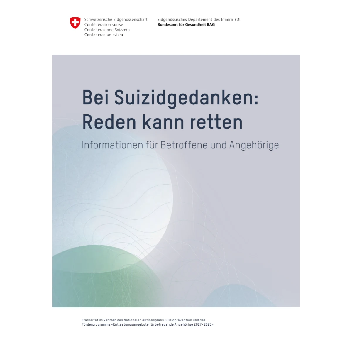 Informationen für Betroffene und Angehörige. Unter dem Motto «Reden kann retten» bietet der Flyer mit integrierter Notfallkarte Informationen für Betroffene und Angehörige rund um suizidale Krisen und gibt eine Übersicht über die wichtigsten Anlaufstellen und Hilfsangebote.