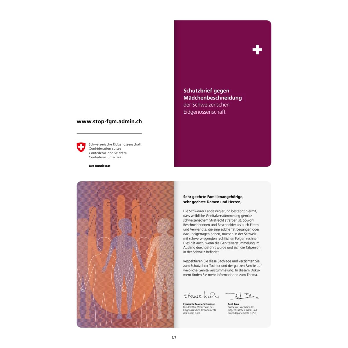 Der Schutzbrief gegen Mädchenbeschneidung ist ein Präventionsinstrument und soll Mädchen vor einer weiblichen Genitalbeschneidung schützen. Er dient der Sensibilisierung und Aufklärung und unterstützt Familien gegen den gesellschaftlichen und familiären Druck, Mädchen beschneiden zu lassen.