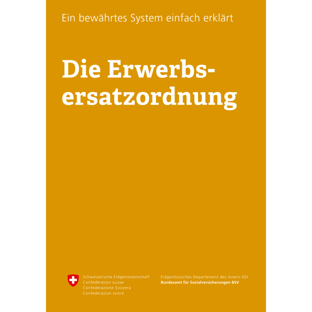 Die vorliegende Broschüre vermittelt grundlegende Informationen zur EO. Die Versicherung wurde im Zweiten Weltkrieg für die Soldaten und ihre Familien eingeführt und später in mehreren Etappen zur heutigen umfangreichen Versicherung erweitert. Leistet die Person Militärdienst, Zivildienst oder Zivilschutz, ersetzt die Erwerbsersatzordnung (EO) einen Teil des Erwerbsausfalls. Die EO deckt auch den Erwerbsausfall bei Mutterschafts-, Vaterschafts- oder Betreuungsurlaub.