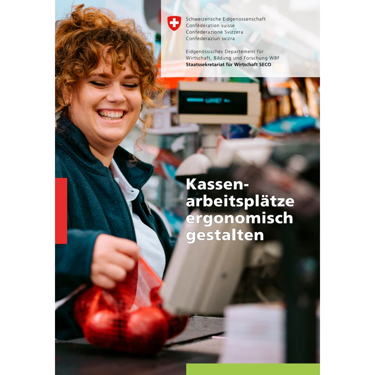 Ergonomische Kassenarbeitsplätze fördern Gesundheit und Wohlbefinden. Wichtige Aspekte: gute Sicht, Vermeidung erzwungener Haltungen, geregelte Pausen, Abwechslung der Tätigkeiten, psychosoziale Unterstützung und Schutz vor Belastungen.