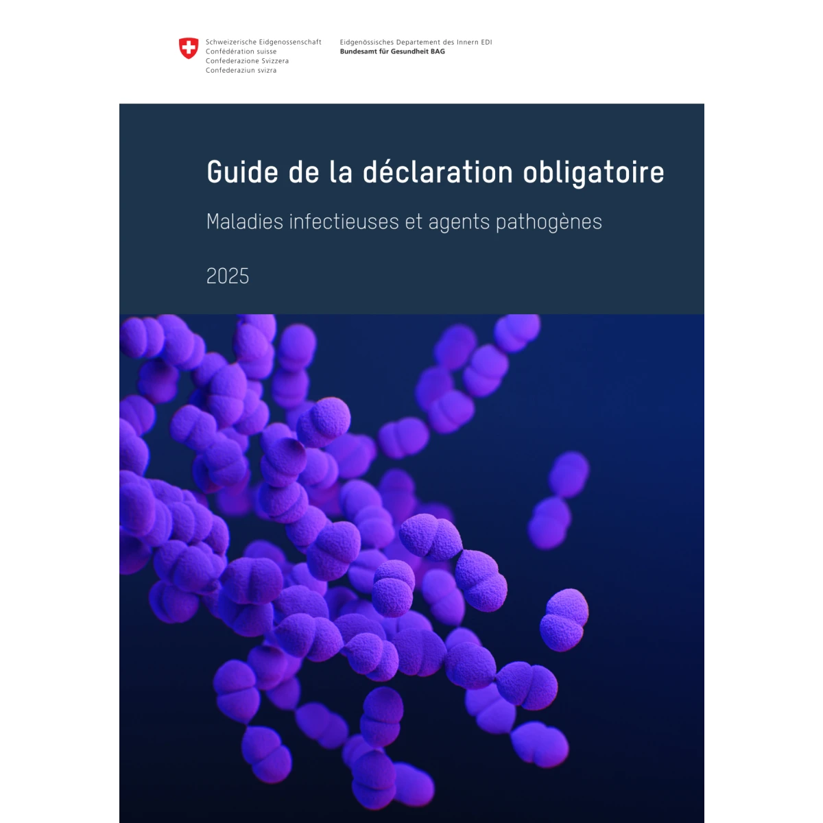 Ce guide contient des informations détaillées sur la déclaration obligatoire de maladies infectieuses et agents pathogènes. Il est destiné à faciliter la procédure de déclaration au quotidien et à permettre aux médecins et aux laboratoires soumis à cette obligation de trouver rapidement les thèmes, avec pour chacun d’eux leurs critères, délai et voie de déclaration.