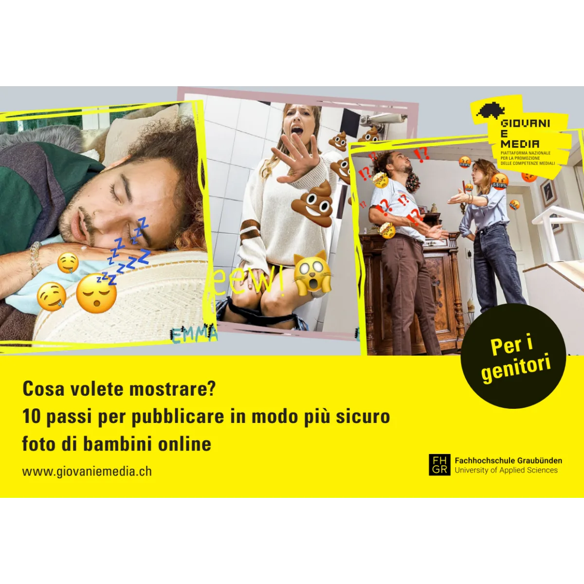 Il volantino illustrano un percorso con dieci domande da porsi prima di condividere uno scatto o un video sulle reti sociali. Se a tutte le domande si risponde in modo positivo significa che l’immagine non dovrebbe presentare particolari problemi e può essere condivisa online. Se lungo il percorso invece si incappa in una risposta negativa, il consiglio è quello di evitare di pubblicare l’immagine.