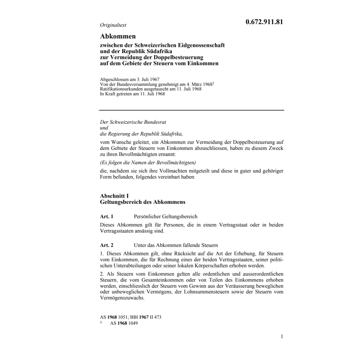 und der Republik Südafrika zur Vermeidung der Doppelbesteuerung auf