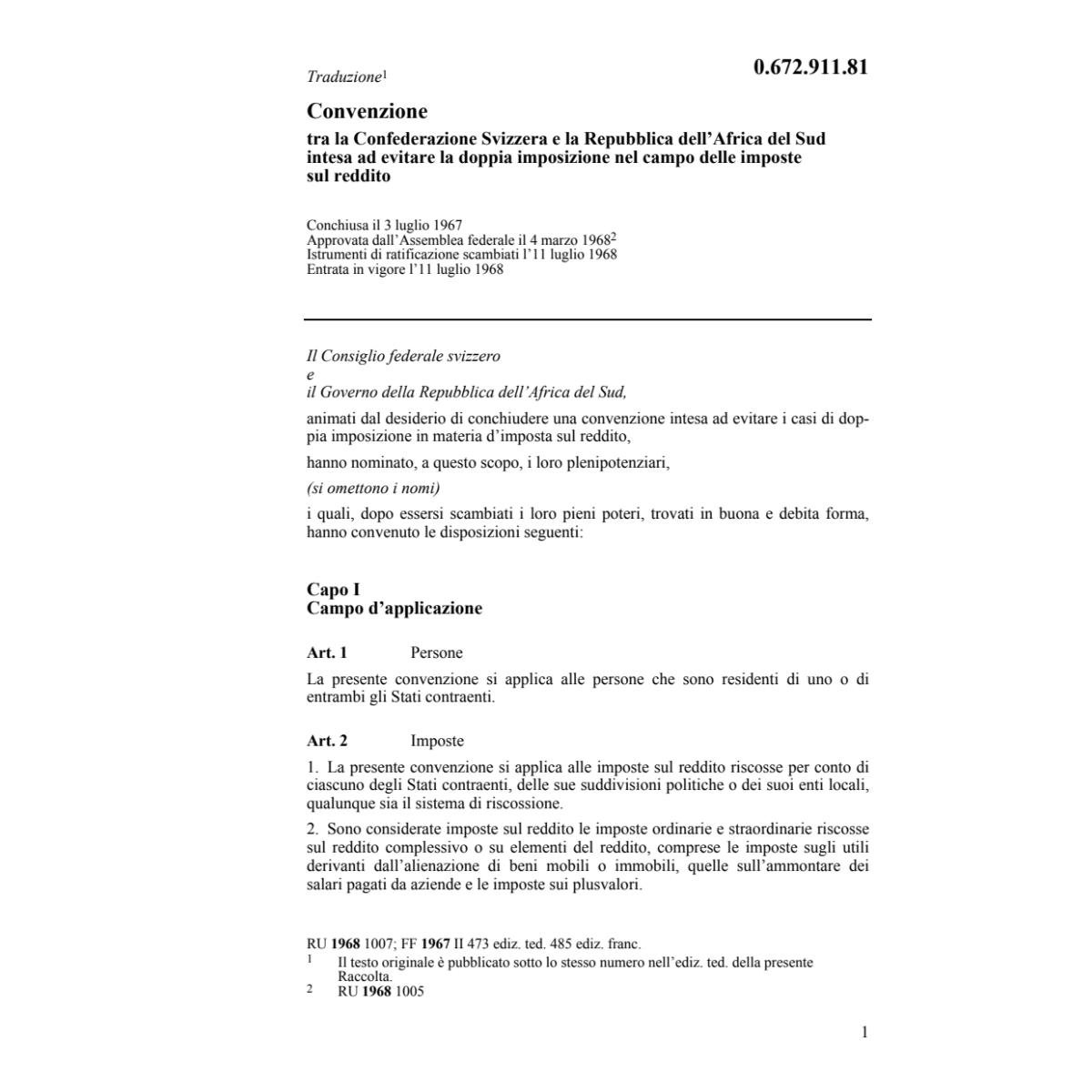 Convenzione del 3 luglio 1967 tra la Confederazione Svizzera e la