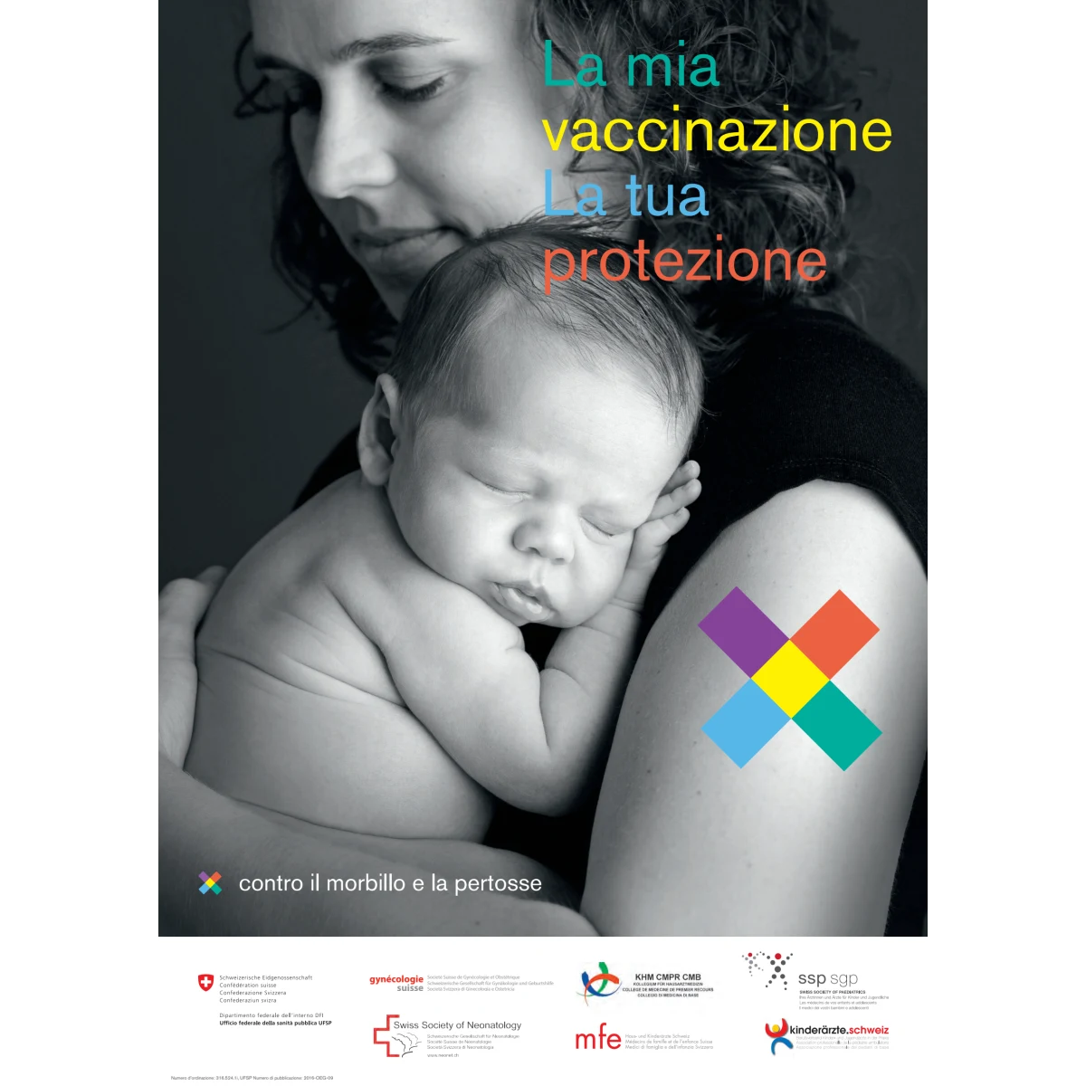 Poster A3: La mia vaccinazione. La tua protezione. Contro il morbillo e la pertosse (donna)
