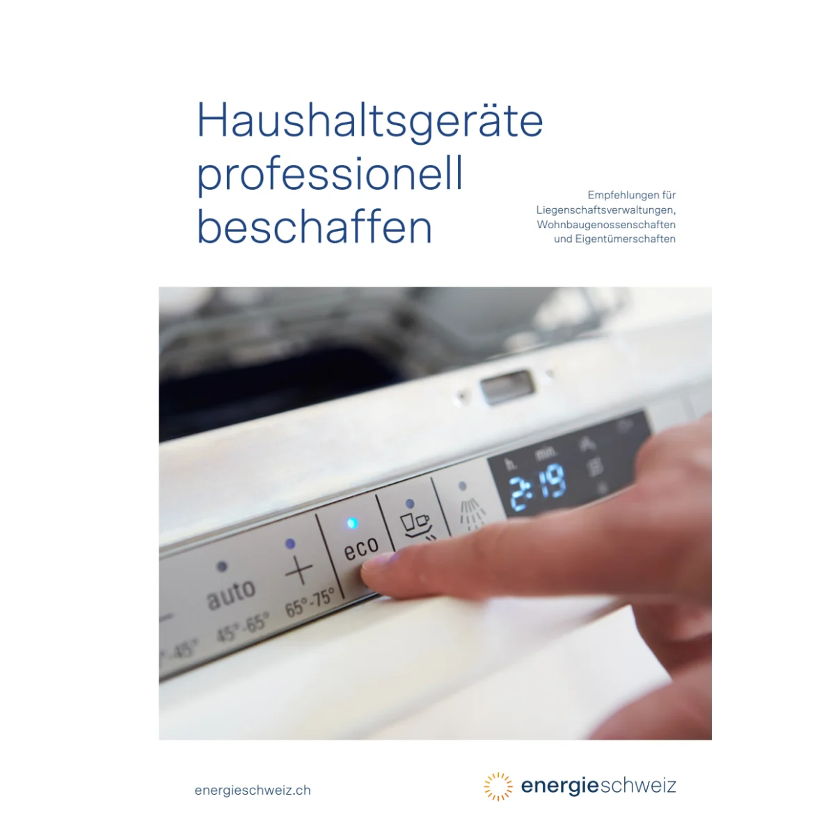 Steht in einer Liegenschaft der flächendeckende Ersatz der Geräte an? In dieser Broschüre finden Sie Beschaffungskriterien, gesetzliche Grundlagen sowie Informationen zu Einkaufshilfen. Der Geräte-Überblick enthält Angaben dazu, bei welchem Gerät welches Sparpotenzial vorhanden ist und Empfehlungen für den Kauf.