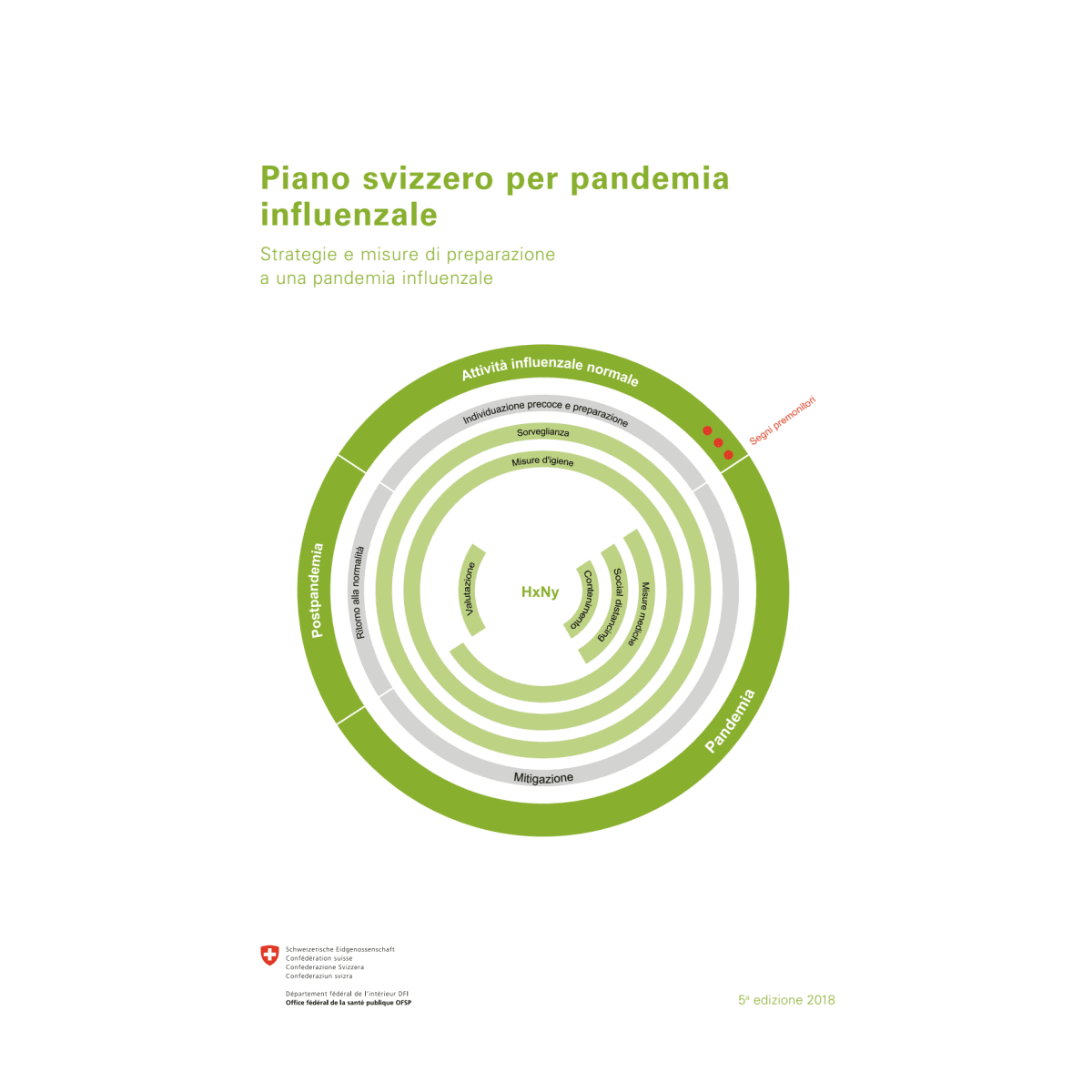 Il Piano svizzero per pandemia influenzale è un importante strumento per Confederazione, Cantoni e privati affinché si possa pianificare la preparazione ad una pandemia e serve da sostegno al coordinamento internazionale. Per ogni fase sono descritti le misure da adottare e il loro scopo nonché il ruolo dei diretti interessati.