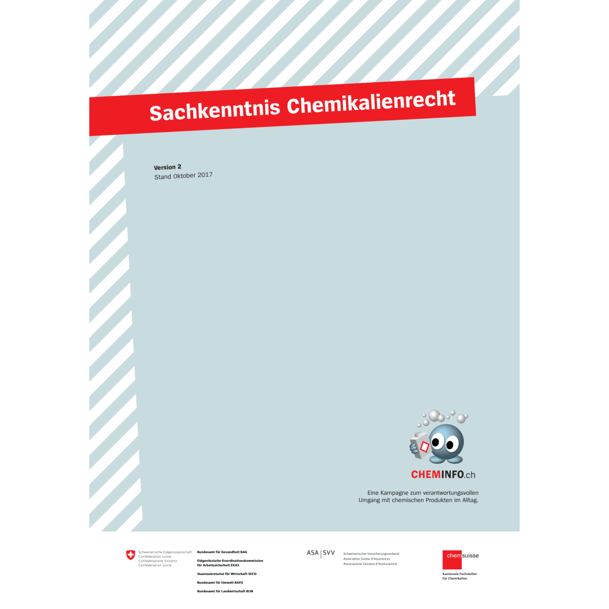 Diese Broschüre gibt allen, die Umgang mit chemischen Produkten haben, einen Überblick über die Vorgaben des Chemikalienrechts in der Praxis, insbesondere für Sachkenntnisträger, die die Beratungspflicht im Handel umsetzen müssen. Verschiedene Kapitel dürften aber auch von Interesse für andere Gruppen vom Chemikalienrecht Betroffener sein, seien dies Fachbewilligungsträger oder Verwender von Chemikalien, die etwas mehr über die geltenden Regelungen im Bereich von chemischen Produkten wissen wollen.