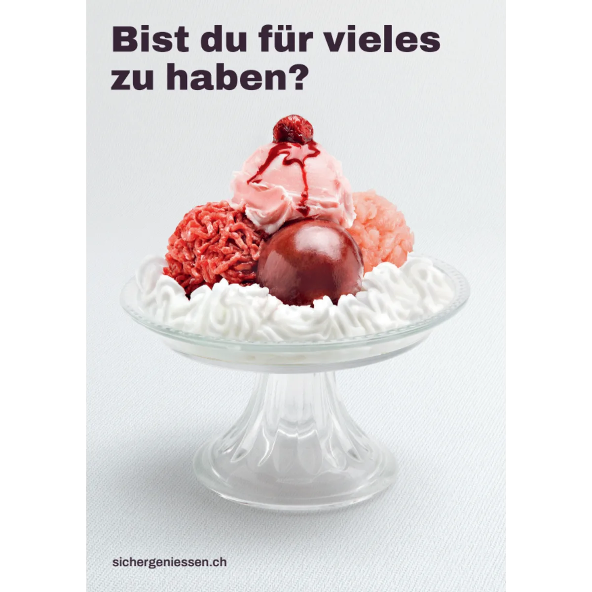 Die Postkarte macht auf das Online-Portal sichergeniessen.ch aufmerksam. Die Kampagne „sicher geniessen“ ruft die verschiedenen Hygienetipps für den richtigen Umgang mit Lebensmitteln in Erinnerung und liefert hilfreiche Tipps.