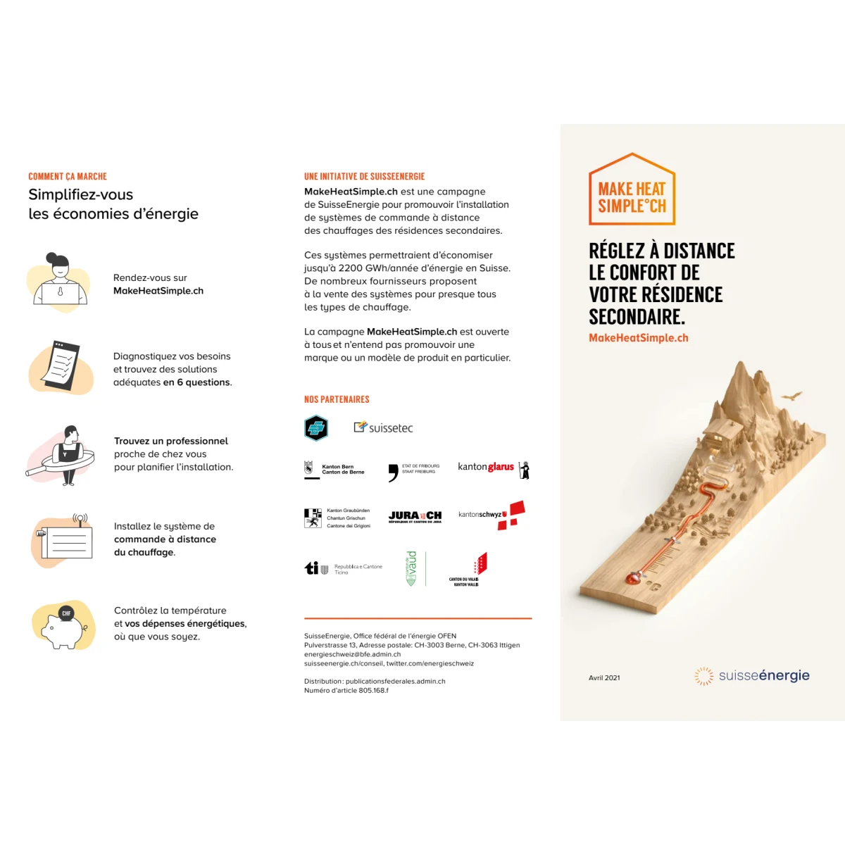 MakeHeatSimple.ch est une campagne de SuisseEnergie pour promouvoir l’installation de systèmes de commande à distance des chauffages des résidences secondaires. Vous souhaitez contrôler la température ambiante par télécommande depuis n'importe quel endroit? Cette fiche vous expliquera comment procéder au mieux et quels sont les avantages que vous offre ce système.