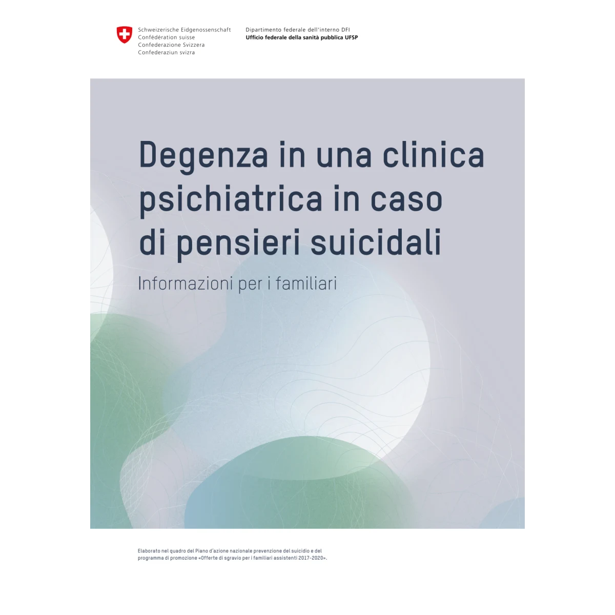 suicidio, quindi anche amici o altre persone intime. Oltre a fornire risposte a domande frequenti in merito a un ricovero psichiatrico, l’opuscolo intende fornire spunti di riflessione e incoraggiarvi a prendervi cura anche di voi stessi in un periodo difficile come questo.