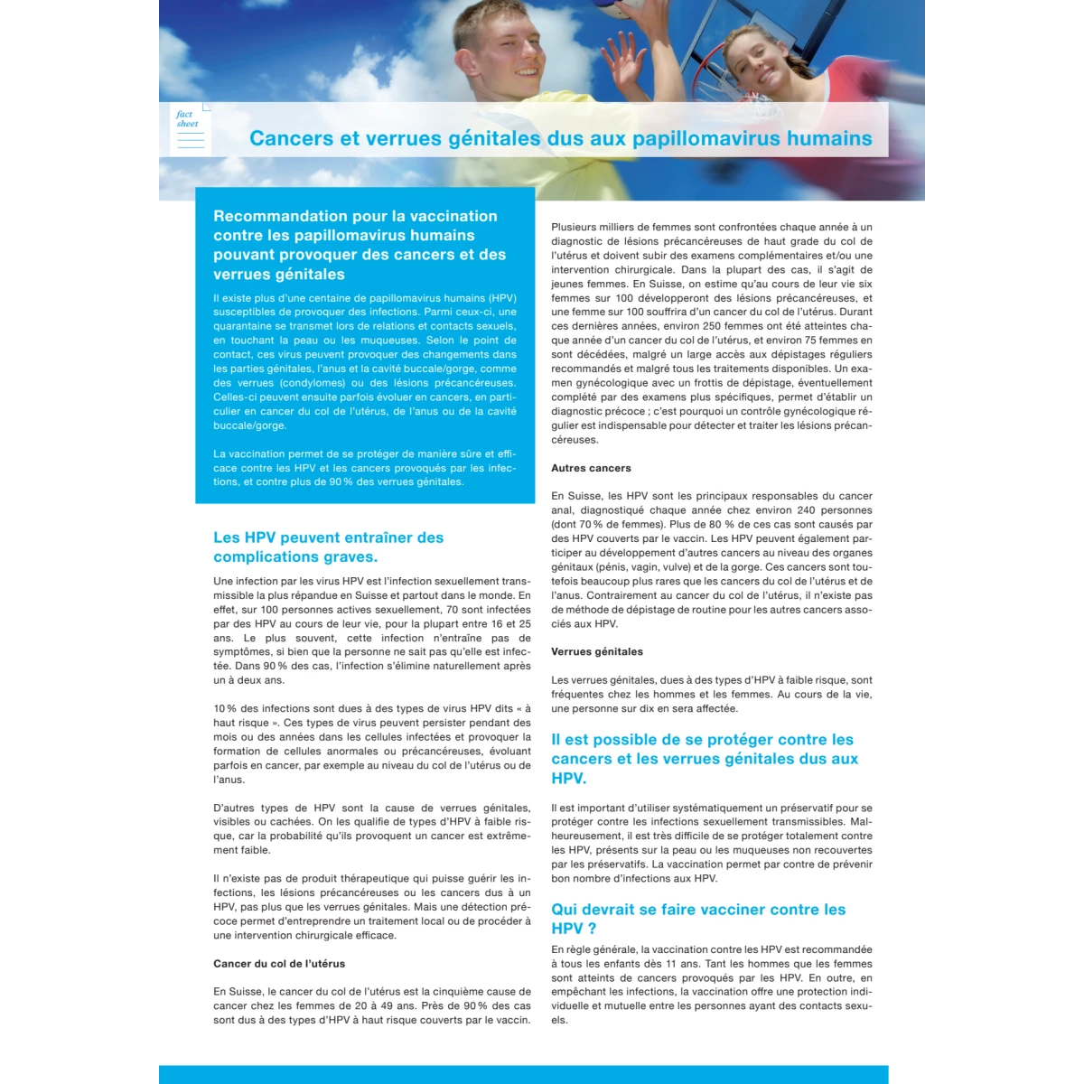HPV et des mesures à prendre. Elle donne des recommandations pour la